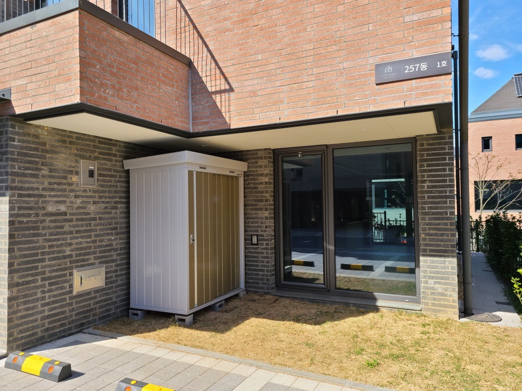 경기도 파주 전원주택단지 보관용 창고 NXN-15S 1530*950* ( 0.44평 ) 크기이며, 멜란지 브라운 ( MB ) 색상의 문 입니다.