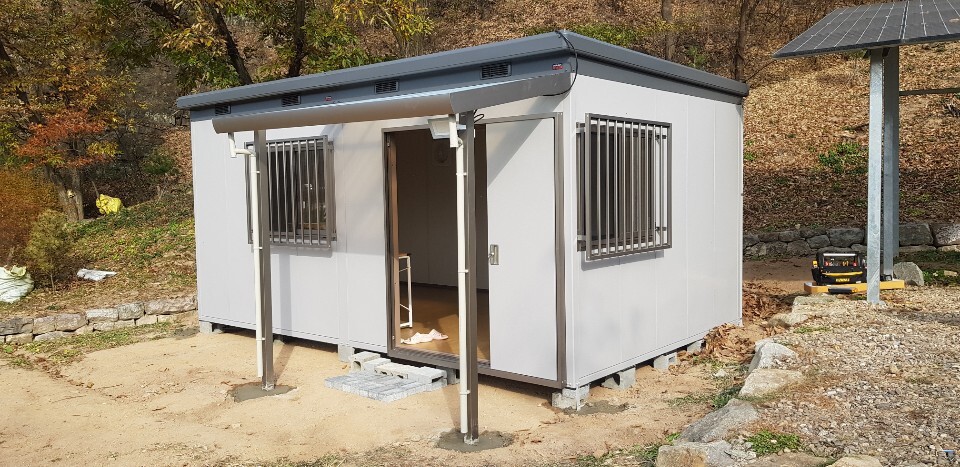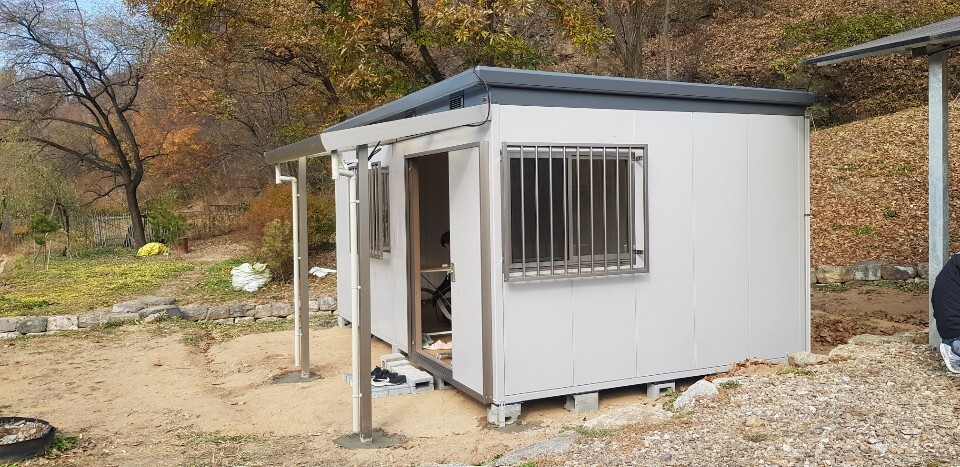 경북 안동 길안 설치한 SMK-150H 4920* 3040* 2440* ( 4.53평 ) 크기의 닫목적창고 입니다.
