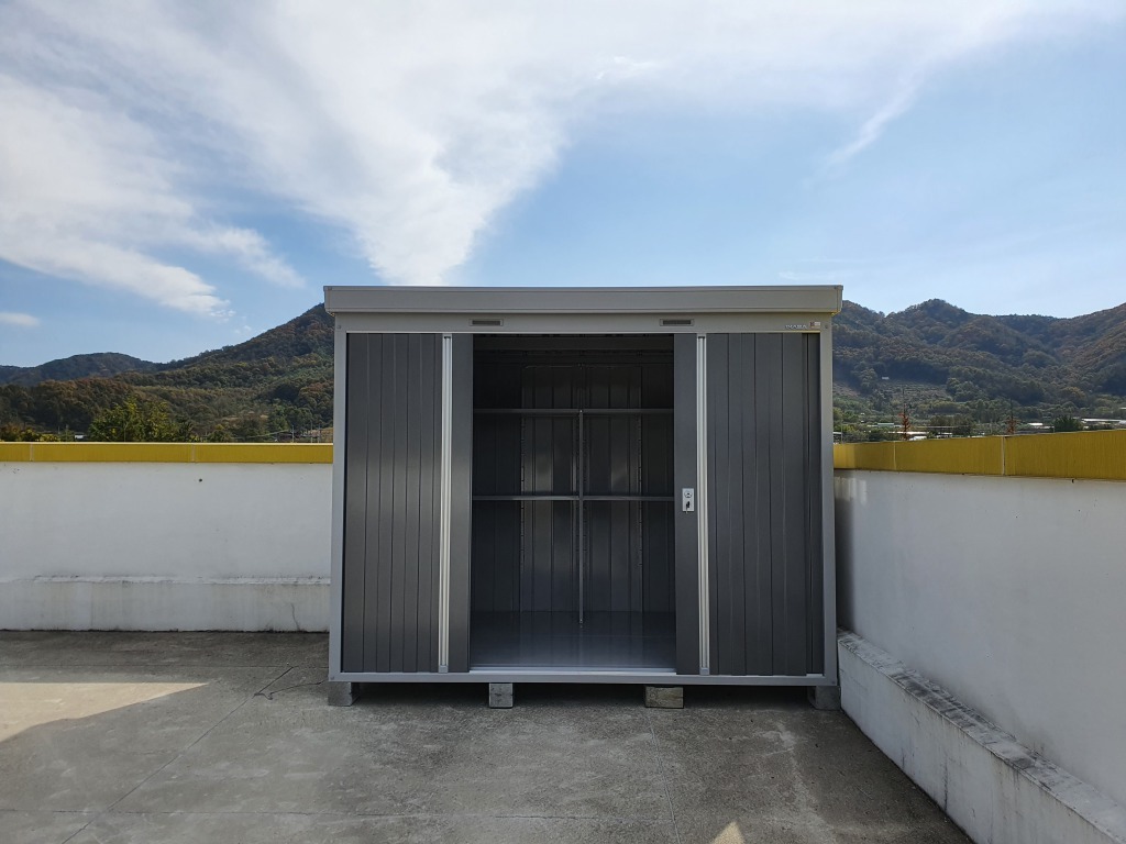 일반적인 건물위 옥상에서도 적절히 오랫동안 사용이 가능한 조립식 창고 입니다 ^-*/